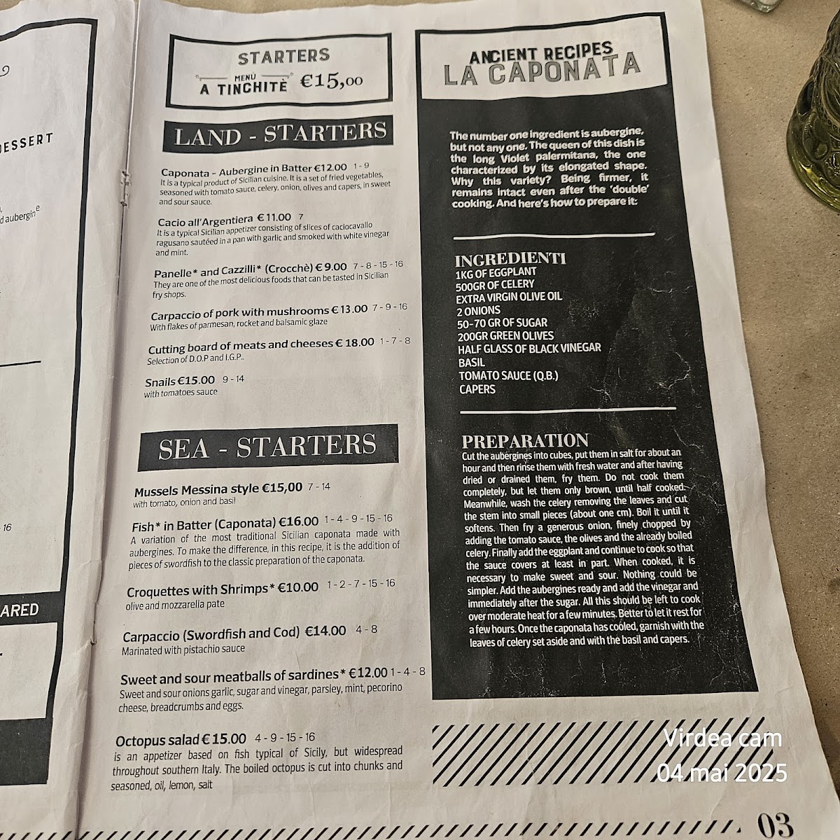 TINCHITE' Taverna & Putia, located in the picturesque Cefalù, is a culinary gem that embodies the heart of Sicilian cuisine. With a vibrant atmosphere and open kitchen, diners are treated to both delightful sights and sumptuous bites. The menu features generous portions of traditional dishes, each prepared with fresh, high-quality ingredients.